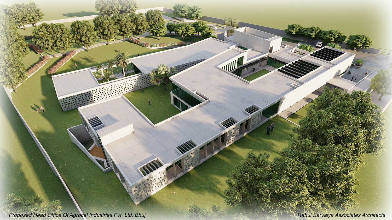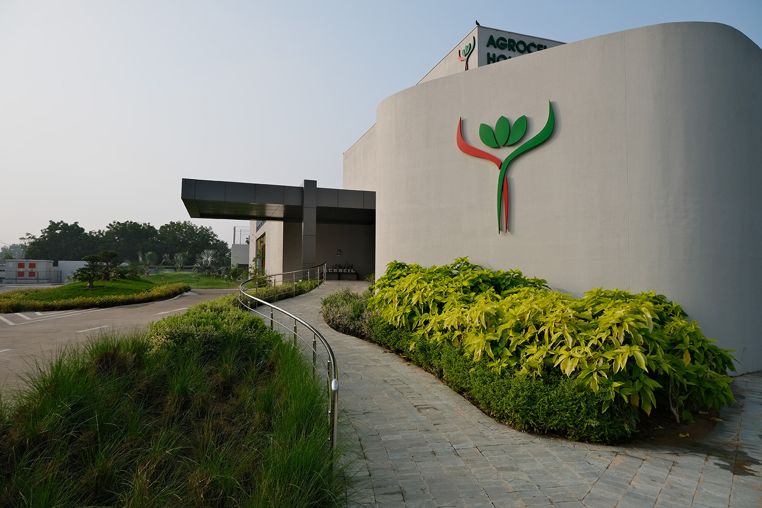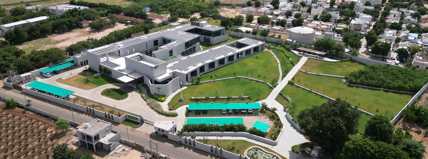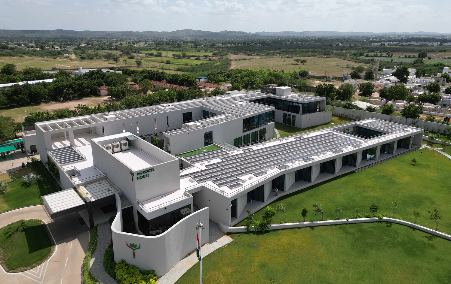 Agrocel House, the headquarters of Agrocel Industries Pvt. Ltd., stands as a remarkable reflection of the evolving Indian rural fabric. Located in Bhuj, this architectural marvel seamlessly blends open, semi-open, and closed spaces, with courtyards serving as the central theme. The building proudly features seven distinct courtyards of varying sizes, each adorned with diverse flora that enrich the experience of the space.