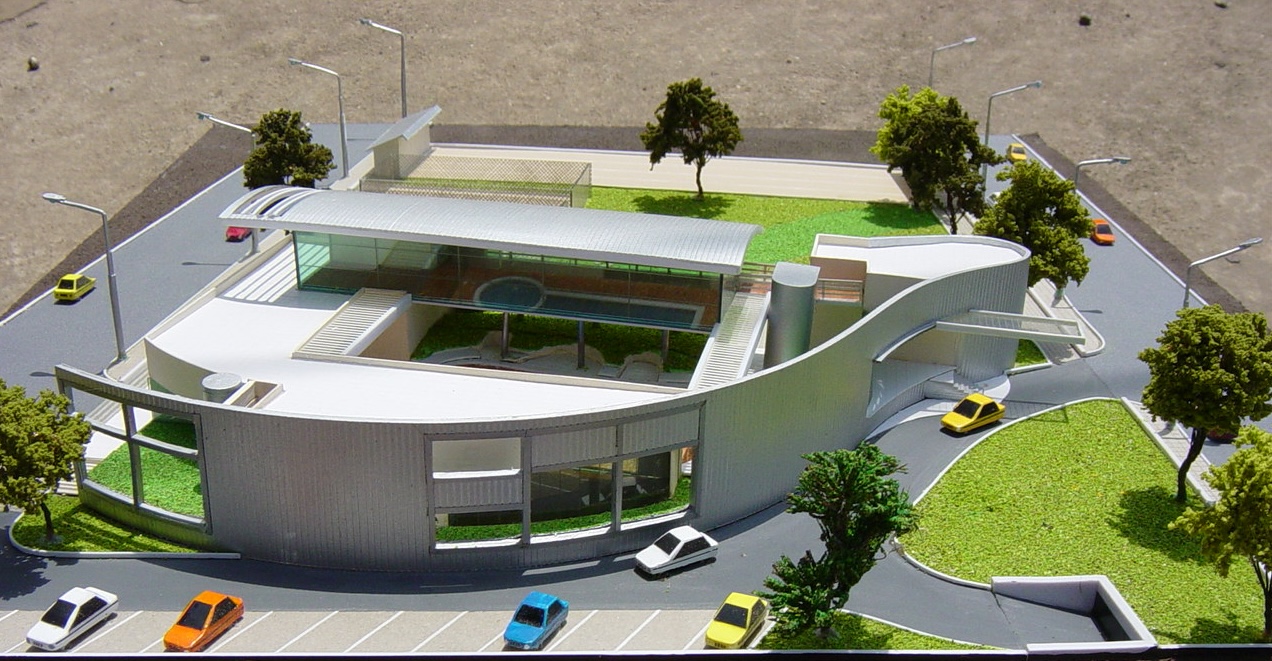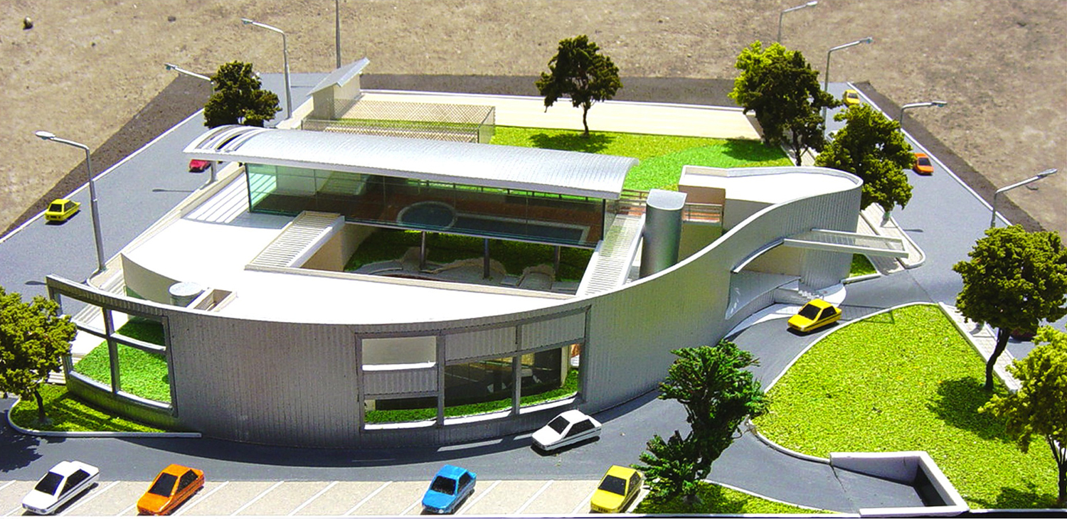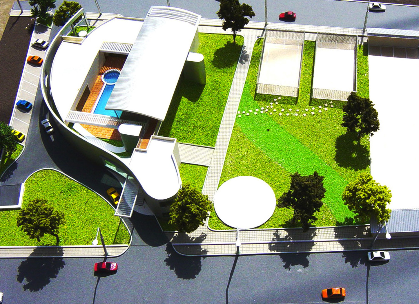 A defining feature of the club is its unconventional building shape, a creative solution to the challenges posed by the restrictive plot area. The structure comprises smaller interconnected buildings, joined by bridges on the first floor. This innovative layout is enveloped by a curved screen, which not only adds a distinctive aesthetic but also ensures privacy for the occupants.