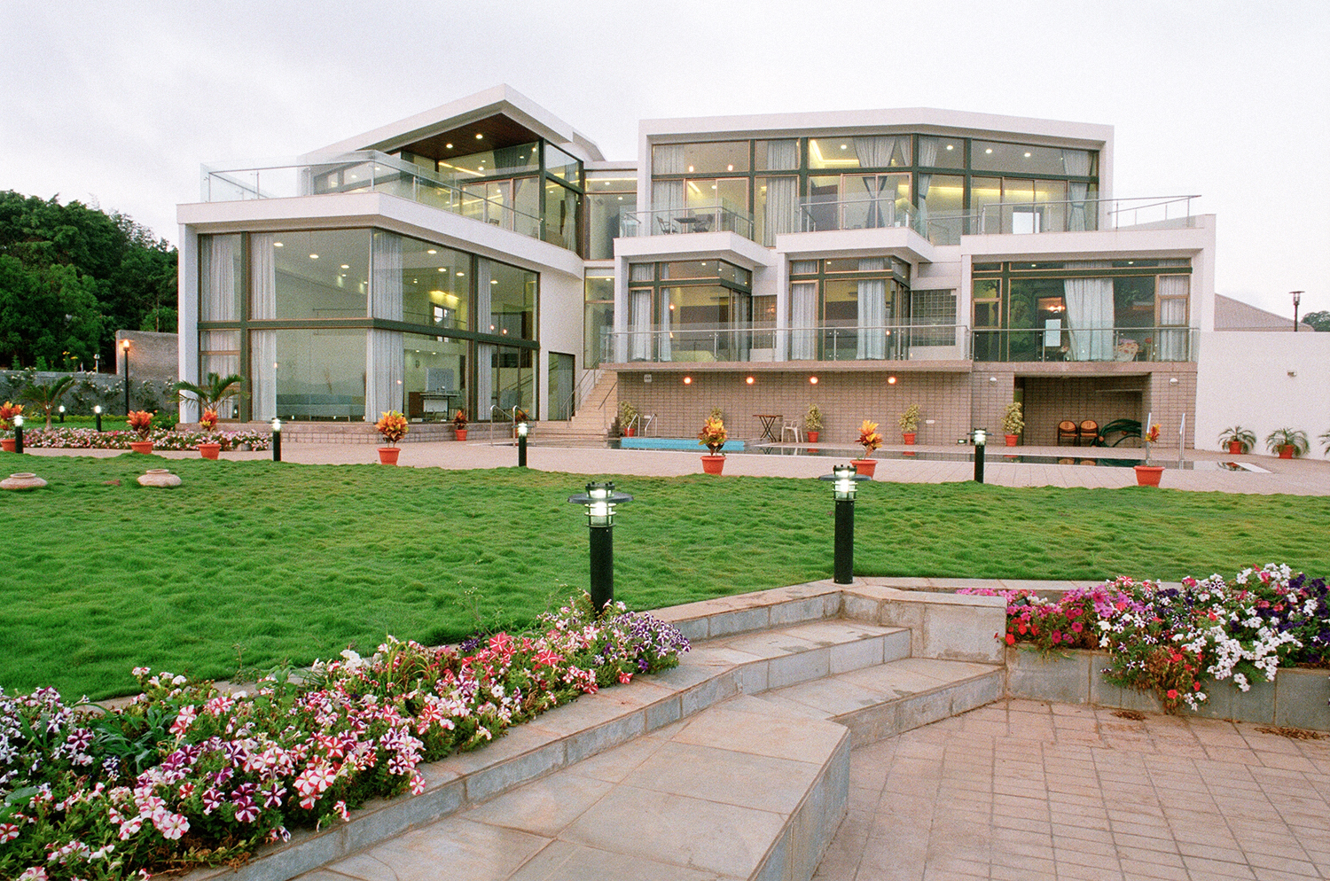The Khandala bungalow is a modern luxury retreat that harmonizes bold architectural design with the stunning natural beauty of its surroundings. Featuring expansive glass façades and a multi-level layout, the villa offers breathtaking views of the Khandala valley and a nearby waterfall, creating an open, tranquil ambiance.