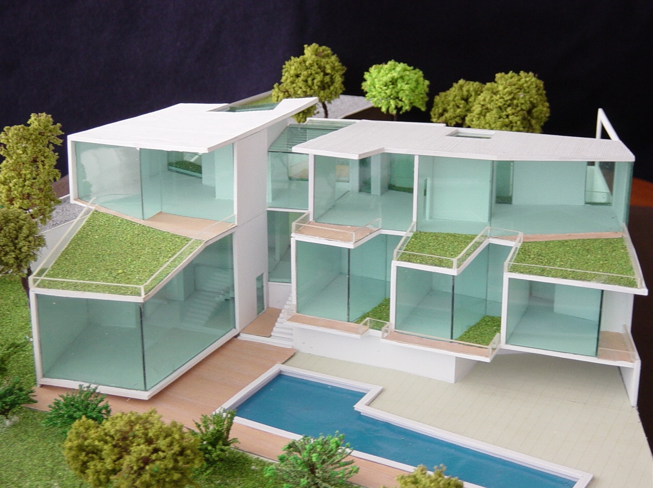 Green terraces and sloping lawns not only extend natural beauty into the home but also provide energy-efficient insulation. Double-height interiors and floor-to-ceiling windows flood the spaces with light, amplifying the sense of elegance and grandeur.